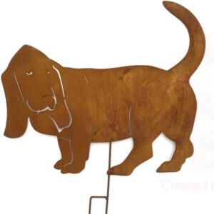Edelrost Basset Hund Gartenfiguren Tierfiguren Haustier Gartendeko Rost skulptu 58 x 70/50 cm